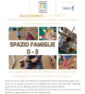 Presso lo spazio verranno inoltre organizzati momenti per famiglie con bambini da 0 a 36 mesi e iniziative condotte da specialisti della prima infanzia.