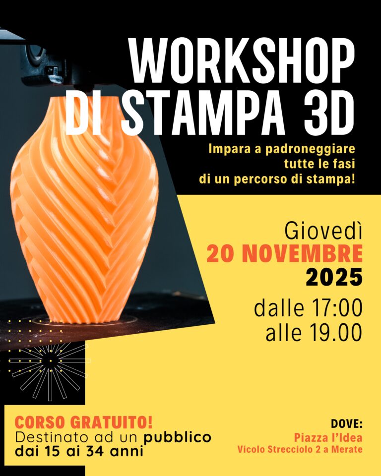 Partecipa al Workshop di Stampa 3D e impara a progettare, preparare e stampare modelli tridimensionali utilizzando tecnologie alla portata di tutti!