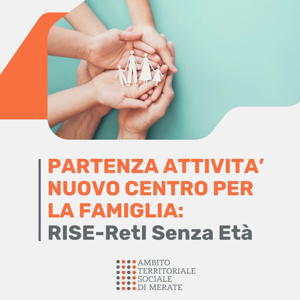 L’Ambito di Merate, attraverso il capofila del Piao di Zona Azienda Speciale Retesalute ed in qualità di ente capofila, ha presentato una proposta progettuale, ammessa e finanziata, dal titolo “RISE-RetI Senza Età”, a valere a valere sull’Avviso regionale D.G.R. n. 4431/2025 e del D.D.U.O. n. 9785/2025, finanziato con risorse del Fondo Nazionale per le Politiche della Famiglia – annualità 2024 (D.M. 23/12/2024).