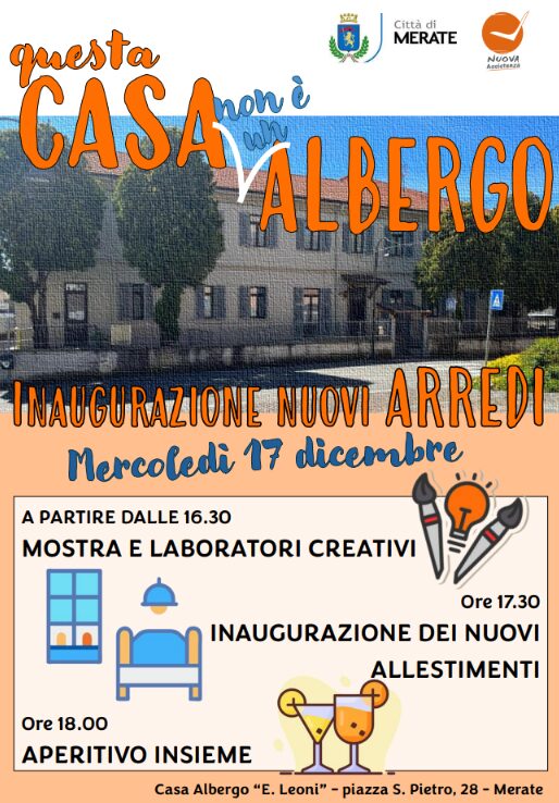 L’Amministrazione comunale di Merate invita all’inaugurazione dei nuovi allestimenti della Casa Albergo “E. Leoni”, in programma martedì 17 dicembre alle ore 16.30.