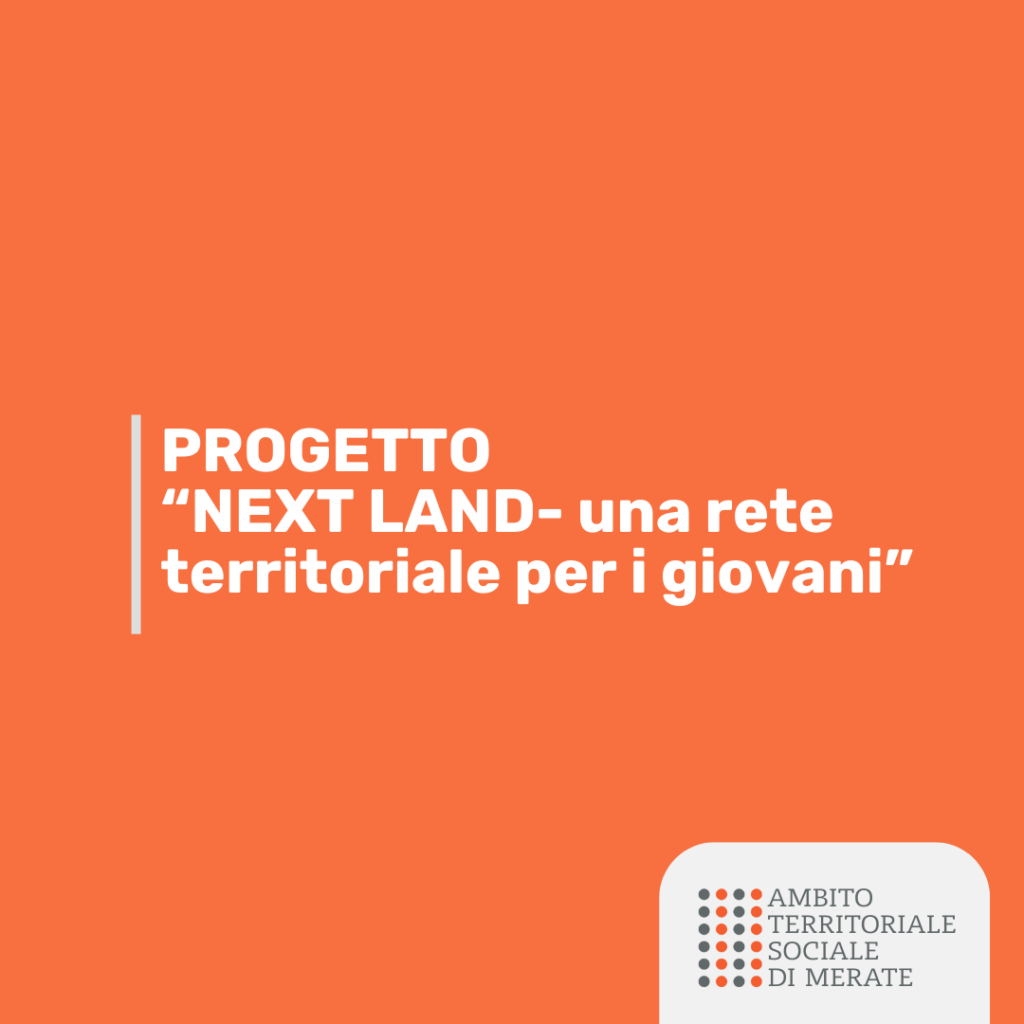 L’Ambito Territoriale Sociale di Merate, tramite l’ente capofila Azienda Speciale Retesalute, partecipa al progetto “NEXT LAND-una rete territoriale per i giovani”, a valere sul BANDO PUBBLICO PER IL FINANZIAMENTO DI INTERVENTI INTEGRATI DI RIATTIVAZIONE E INSERIMENTO LAVORATIVO DEI GIOVANI NEET ” ZERONEET – RETI DI OPPORTUNITA’ PER L’INSERIMENTO OCCUPAZIONALE E LE COMPETENZE” D.G.R. N. XII/ 4612 DEL 23/06/2025 (PRIORITA’ 4 OCCUPAZIONE GIOVANI – ESO 4.1 – AZIONE a.4. – PR FSE+ 2021-2027).