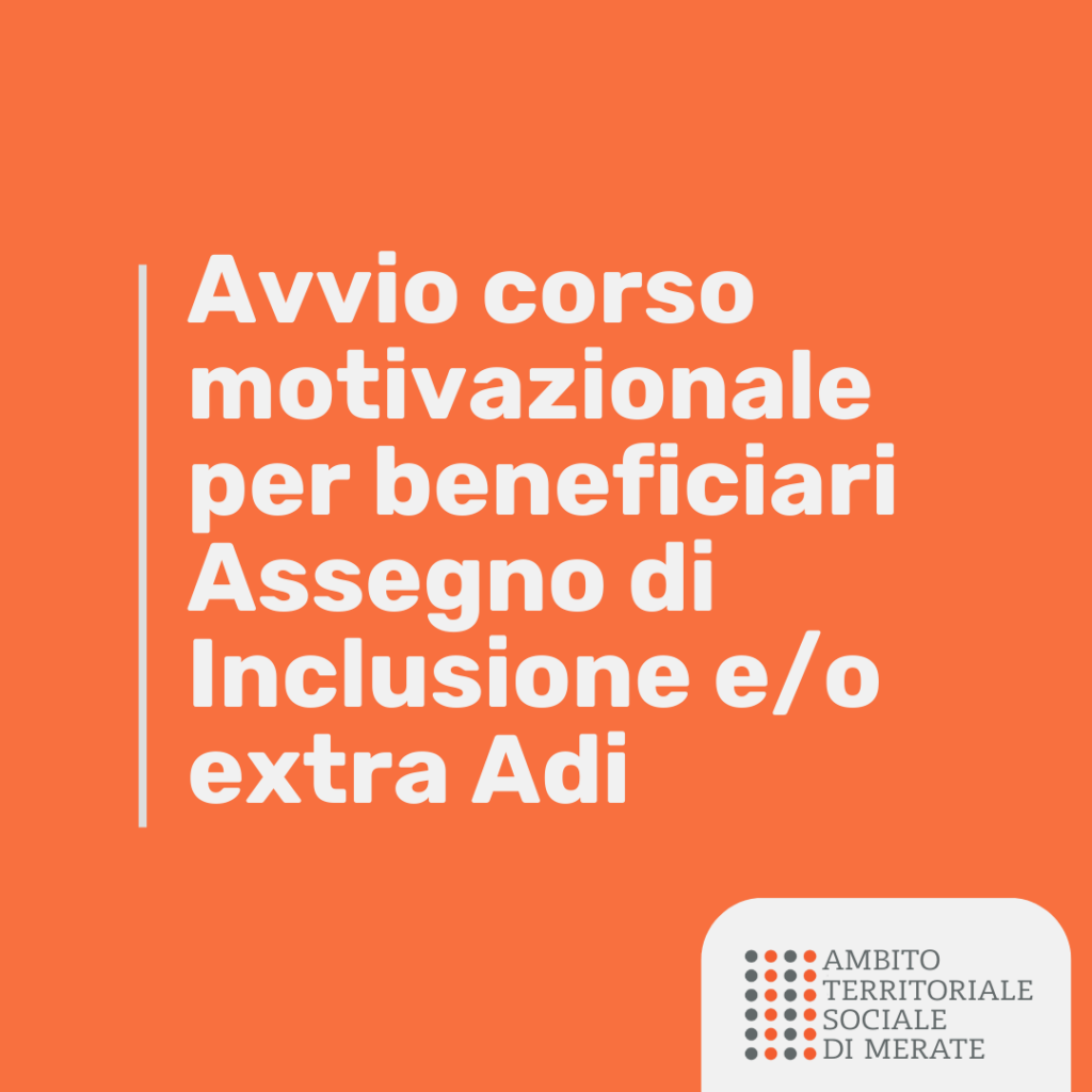 Nel mese di febbraio 2026 l’Area Servizio Inclusione Sociale avvierà il primo ciclo di incontri del corso motivazionale rivolto ai beneficiari dell’Assegno di Inclusione.