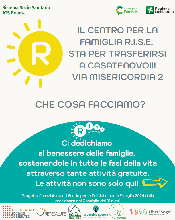 Seguici per conoscere tutte le nostre Iniziative! Contatti:Tel: 3421393283 Mail: centroperlafamiglia.rise@retesalute.net Instagram: rise.centroperlafamigliamerate