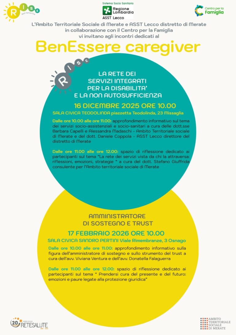 Percorso di incontri promossi dall’Ambito Territoriale Sociale di Merate e da ASST Lecco – Distretto di Merate, in collaborazione con il Centro per la Famiglia. Il ciclo “BenEssere Caregiver” propone momenti informativi e spazi di confronto dedicati a chi si…