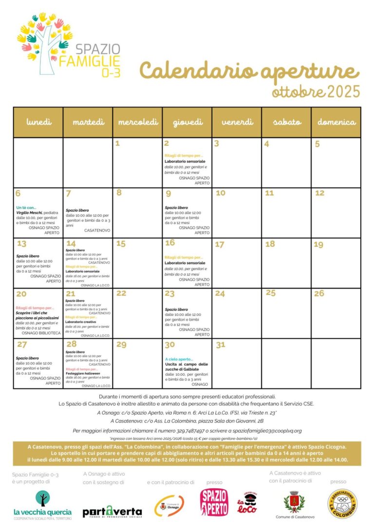 Calendario aperture Spazio Famiglie 0-3 Osnago e Casatenovo